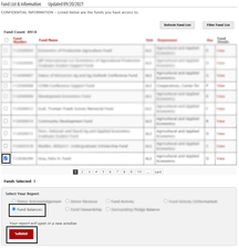 Within the Gift and Fund Management website, you can view fund detail information as well as create a variety of reports. This shows you more about what information can be found about a fund and various reporting available to you.